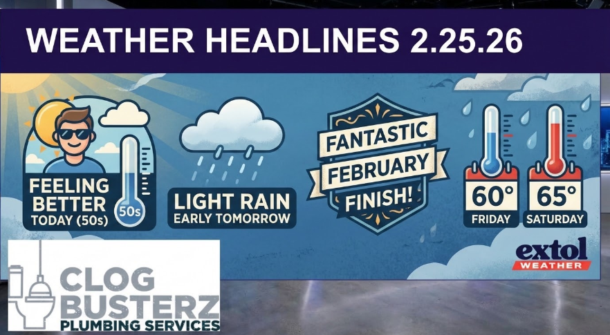 February will end on a good not with sunshine and near 60° Friday, then mid-60s Saturday. Most of our weekend is looking dry.