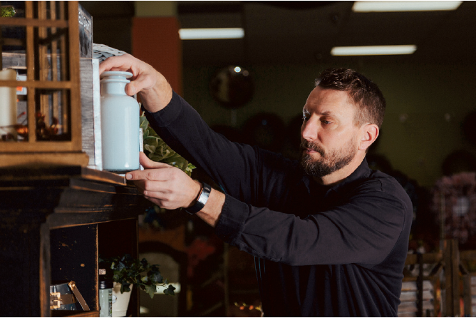 “Everyone has their job,” said Kristy. “I do the displays and change the seasons out and help with the buying. Diann is the floor manager, working with employees and setting the sales and connecting with customers. Dane watches over the frame shop, and Jeff is a jack of all trades – from running the finance and business end to driving our truck when needed,” she added, with a laugh.