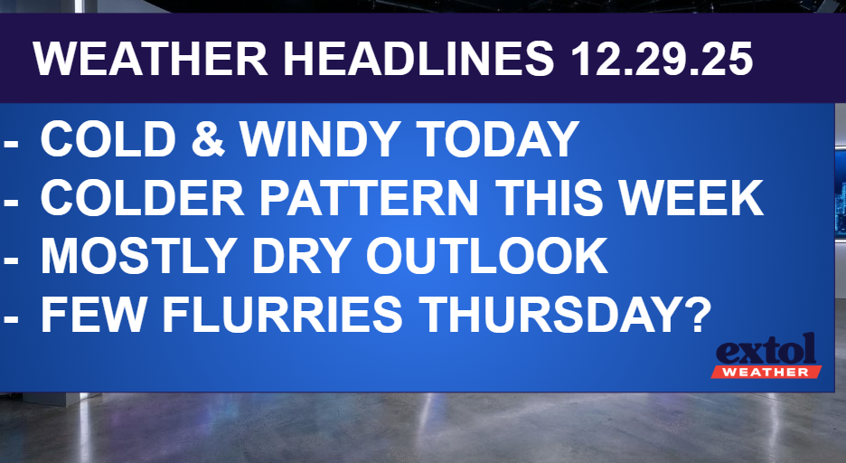 Temperatures plummeted last night and now we’re left with wind chills in the teens to start off the week. Chilly and dry weather is expected as we finish off 2025 and ring in the New Year.