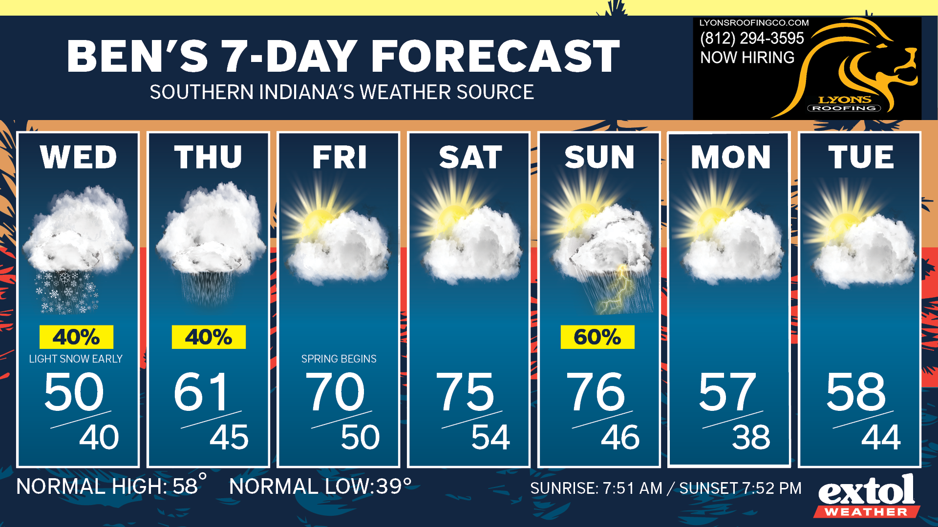 Our spring season officially begins Friday morning and we’ll be heading up to around 70° Friday afternoon. This will lead us to a warm weekend in the 70s. Most of our weekend will be dry, but we’ll need to watch out for another round of thunderstorms developing late Sunday.
