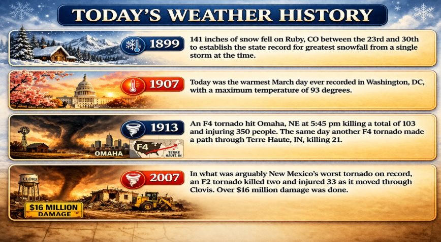 After the hottest March temperature on record Sunday at 89-degrees, it will be 30-40 degrees cooler today. Clearing and a bit breezy with highs in the 50s. North breeze at 10-20 mph.