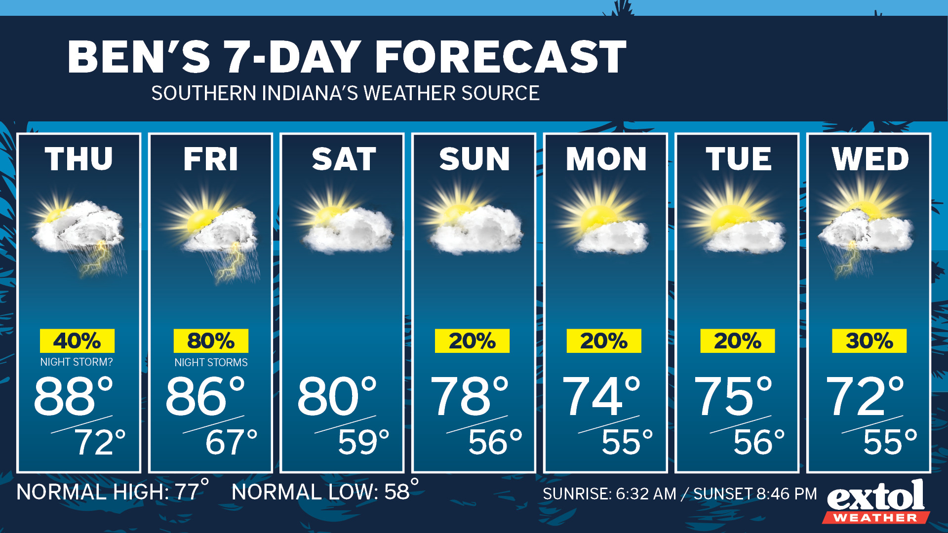 Our daytimes will be mainly dry now through this weekend, but we could have a couple stormy nights, especially late Friday night.