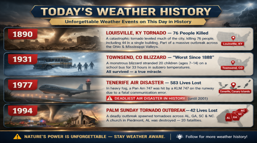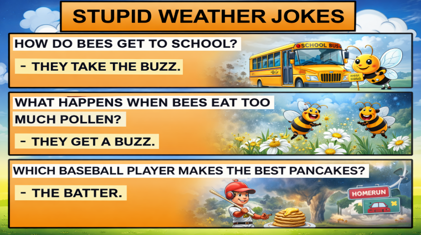 Today’s weather history, countdown, and jokes.