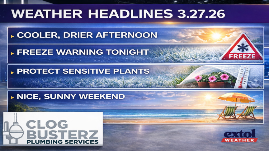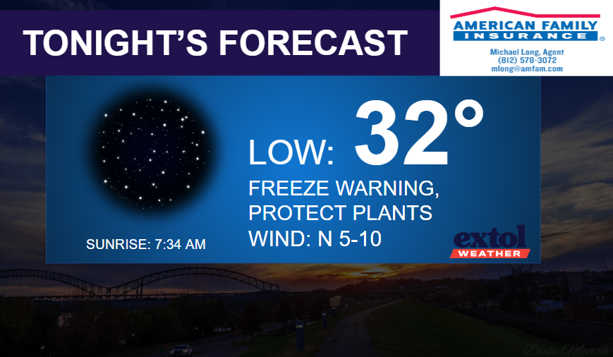 We have a Freeze Warning (protect sensitive plants) tonight from midnight to 10 AM Saturday morning with low temperatures near freezing.