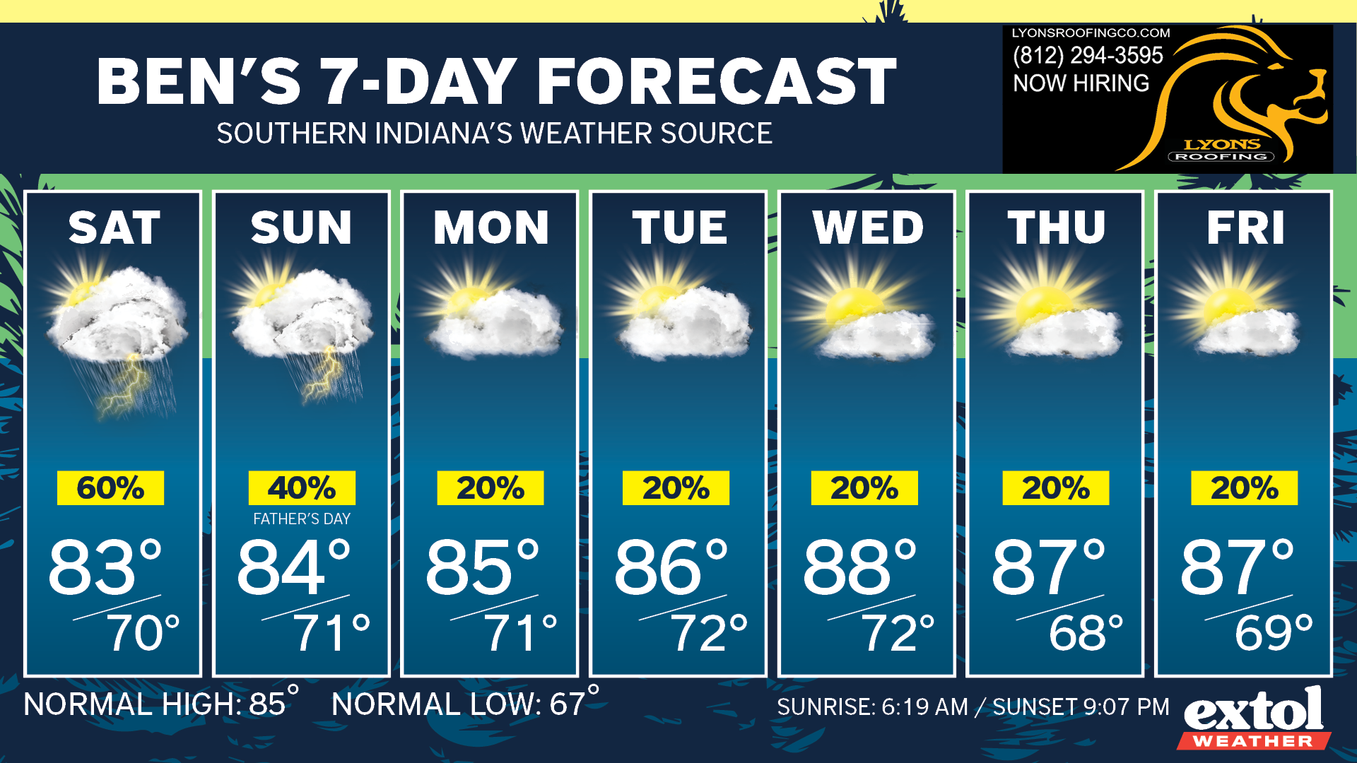 It’s shaping up to be a muggy Father’s Day Weekend with occasional pop-up downpours.