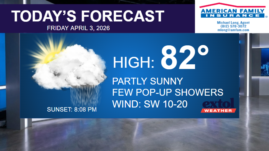 It’s going to be nice and warm again today with highs in the lower 80s and not as windy as yesterday. Southwest winds at 10-20 mph. A few pop-up showers will be possible from time to time, but much of our Friday will be dry.