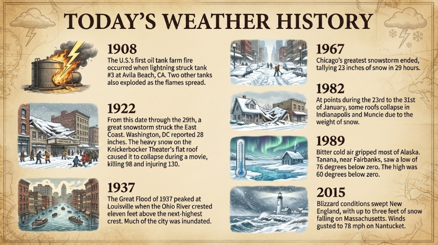 Today’s weather history, countdown, jokes.