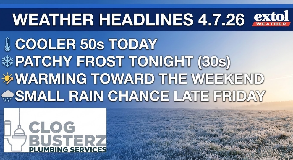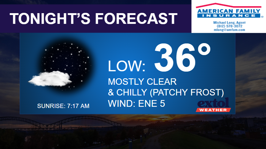 Today will be our coolest day with temperatures running 10-degrees below normal in the 50s this afternoon. Partly sunny with a northeast breeze at 5-15 mph. Tonight will be chilly again with lows in the 30s. Some patchy frost possible, especially in typical cold spots (low-lying areas outside of the city).