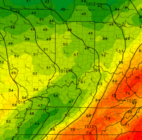 Be ready for the temperature drop! It will be warmest in the 60s/70s Saturday morning, then falling sharply to the 50s Saturday afternoon behind the cold front. It will also be a bit breezy, so be prepared to bundle up a bit.