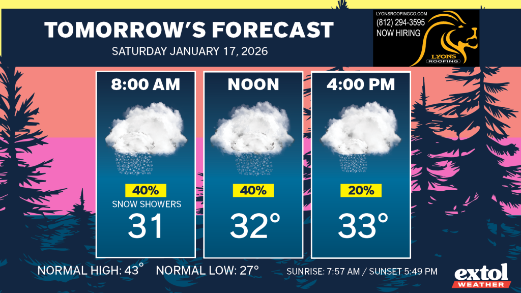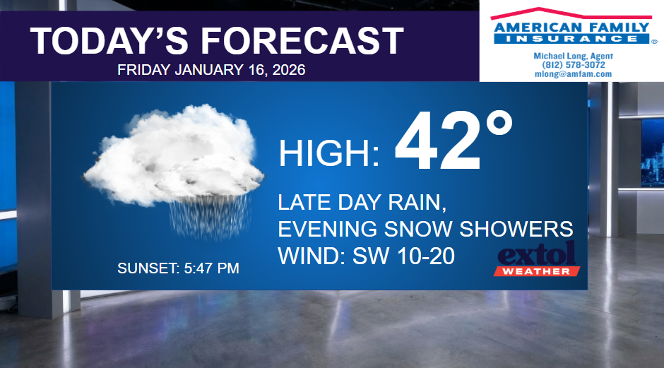 Today will be cloudy and chilly, but above freezing with near normal temperatures in the 40s. By mid-late afternoon light rain will be spreading our way. A bit breezy at times with southwest winds at 10-20 mph. The rain will turn to snow showers tonight. Only light accumulations expected tonight into Saturday morning.