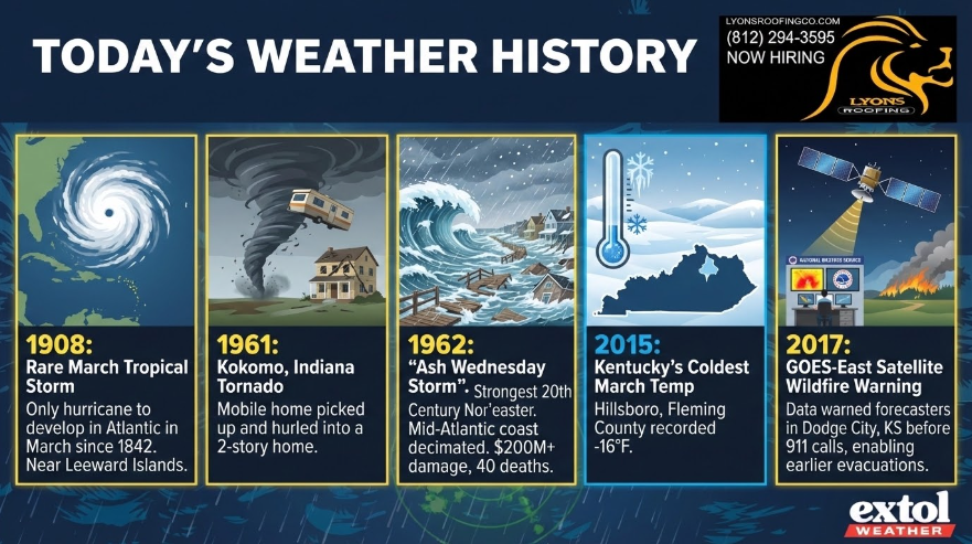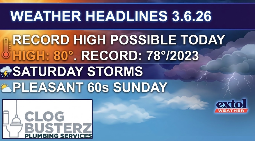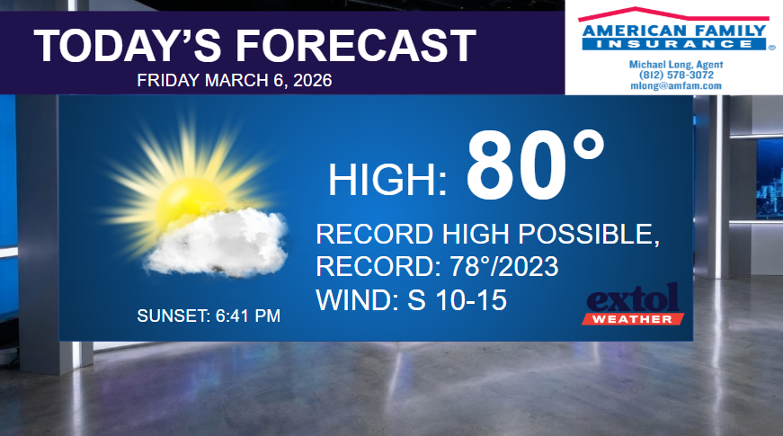 It will feel more like mid-May today with highs soaring to the upper 70s and low 80s. The not so old record high is 78°, set in 2023. Partly to mostly sunny with winds from the south at 10-15 mph.