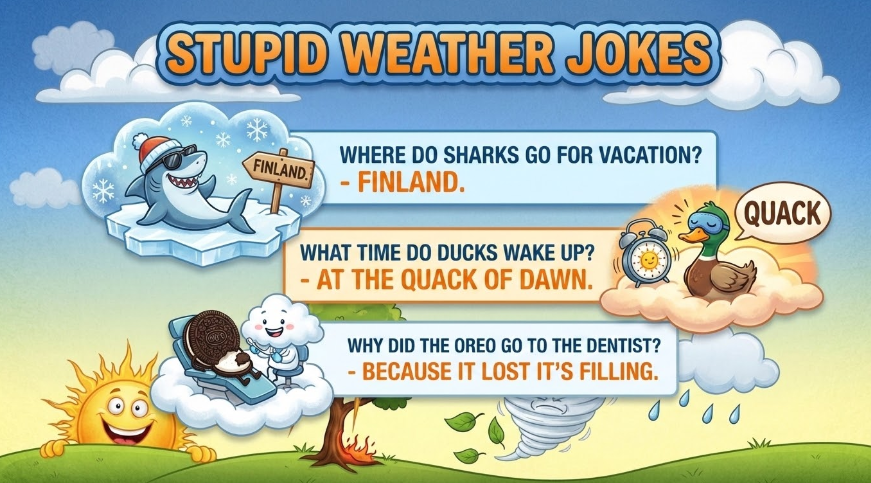 Today’s weather history, countdown, and jokes.