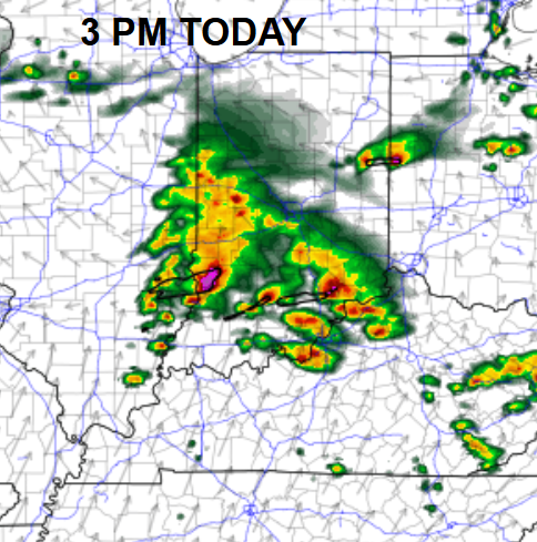 There are plenty of severe weather ingredients coming together as a warm front will be moving up and through our area. The main threat will likely be from 3 PM to 9 PM, with all the severe weather threats on the table – damaging wind, hail, heavy rain, frequent lightning, and tornadoes. Be prepared to seek shelter if a warning is issued for your area.
