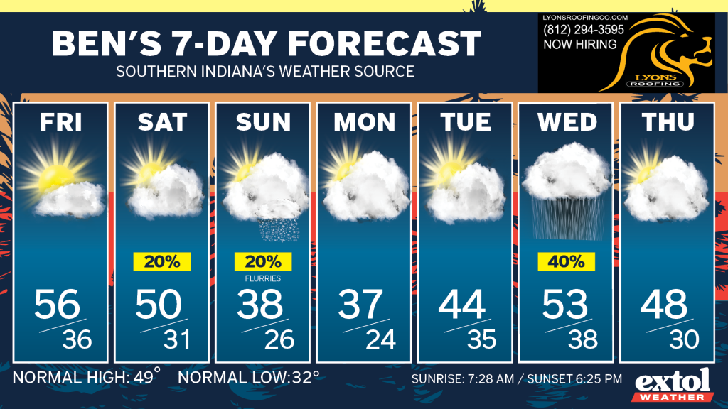 Our weather will quiet down and cool down this weekend. Back to chilly conditions and perhaps some flurries Sunday.