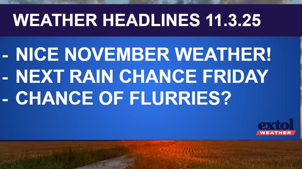 Milder air will hang around for our first week of November with highs in the 60s. The next cold front will bring rain and possibly some thunderstorms Friday.