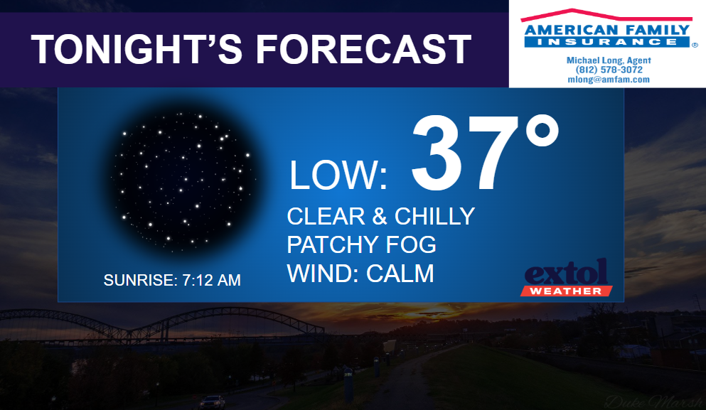 Clear and chilly tonight with lows in the 30s. Patchy fog possible.