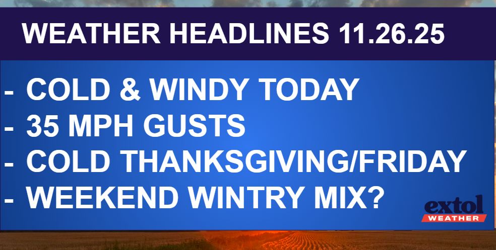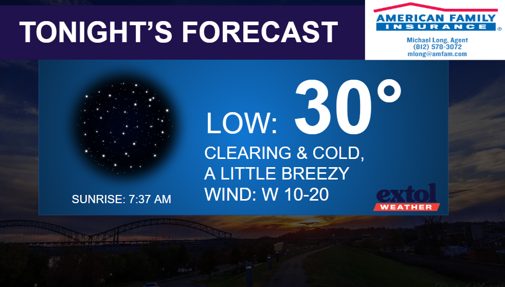 A winter feel has arrived for our Thanksgiving holiday and Old Man Winter will be visiting for a while! Cold and windy behind the cold front today with falling temperatures. Expect highs in the upper 30s and low 40s, with wind gusts up to 35 mph. Wind chills in the upper 20s and low 30s! Brrr…!!!