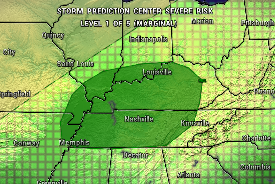 A strong cold front will be moving through the region with gusty winds (30-40 mph) and heavy rain at times Thursday afternoon and evening. Around a half inch to an inch of rainfall can be expected. The rain will move out around 9 PM Thursday night. The severe weather risk is low (level 1 out of 5) for our area, with isolated damaging wind gusts possible.
