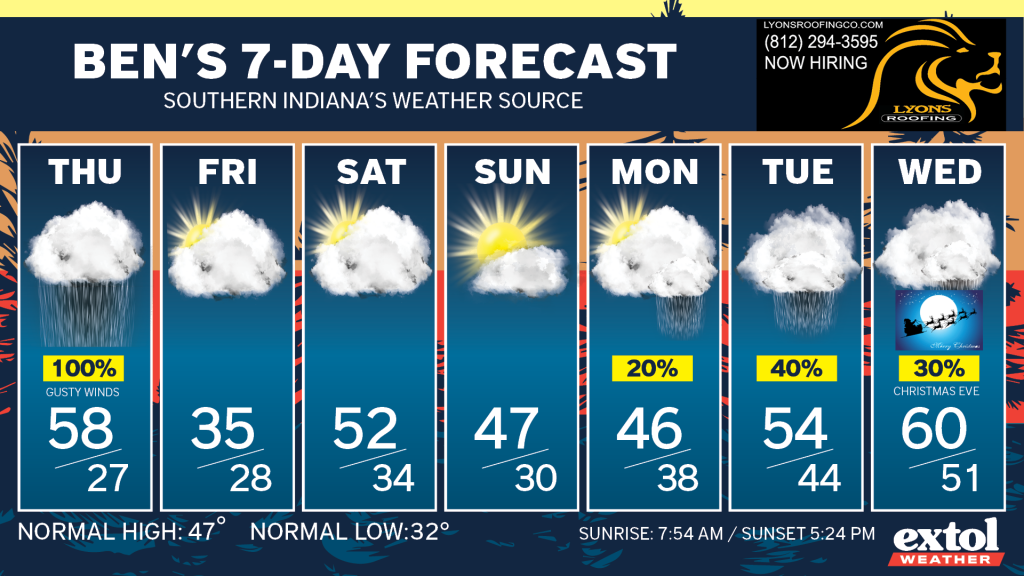 Quiet and cool this weekend, then trending warmer with spotty showers toward Christmas Eve and Christmas Day. 60s possible!