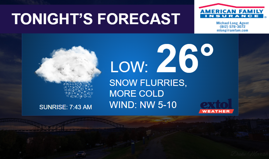 Old man winter is in no hurry to head back north. After a cold and dry day, the next cold front will bring snow flurries overnight into early Thursday morning. The cold front will reinforce the cold temperatures with highs only near freezing Thursday.