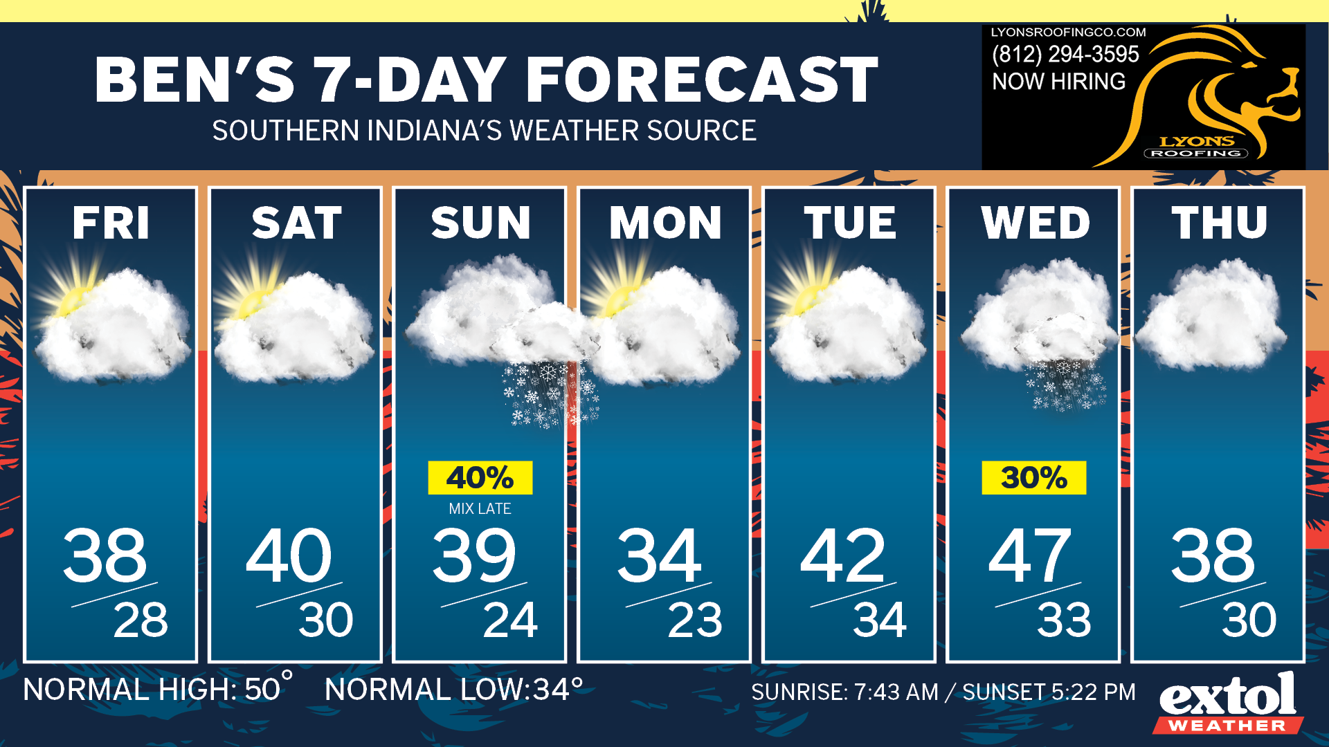 We may see a light wintry mix developing Sunday into early Monday, but no big impacts are expected.