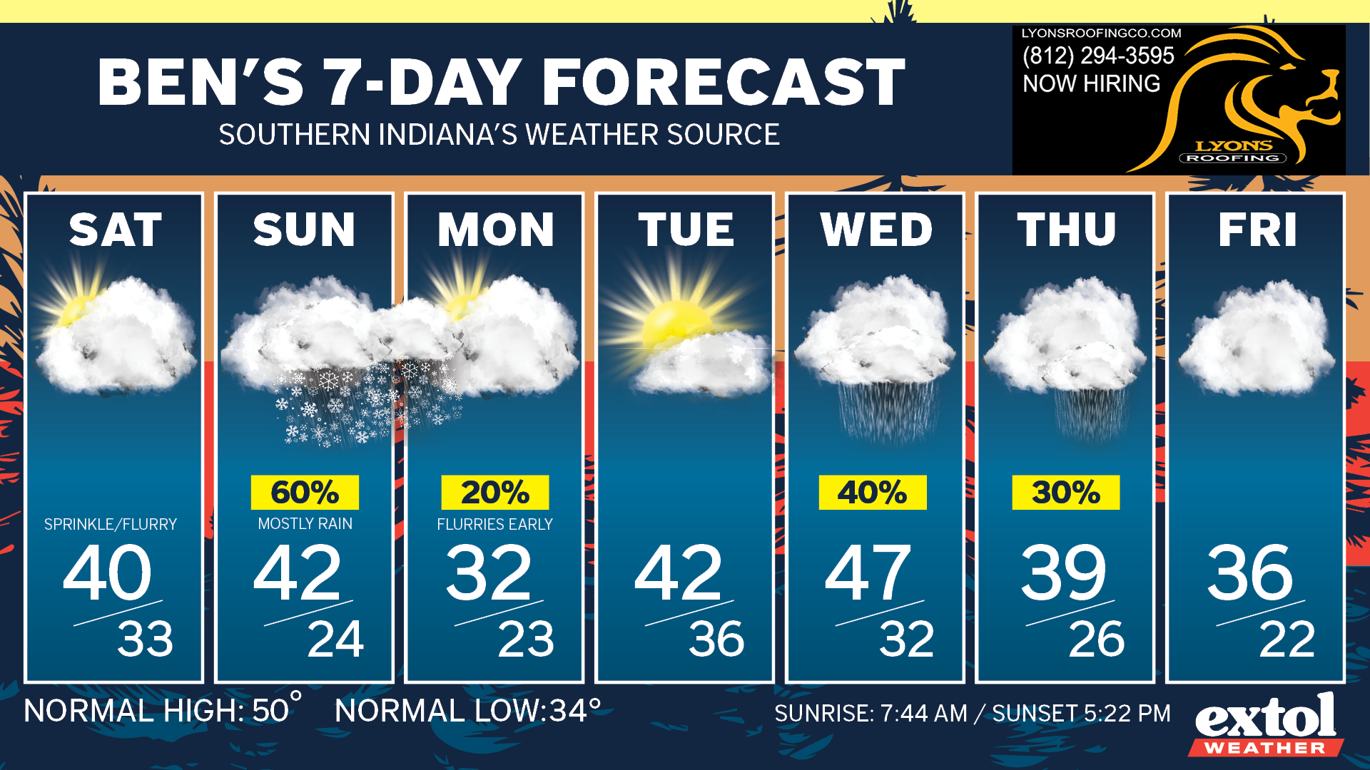 Happy Friday! Today will be mostly cloudy, although we’re trying for some afternoon sunshine, with chilly high temperatures in the mid-upper 30s – still more than ten degrees below normal. A light breeze from the south.