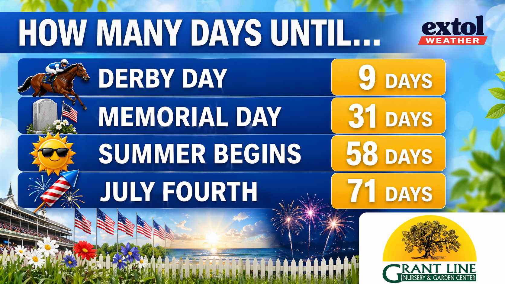 We’ll need to keep an eye out for a chance of strong to severe storms late Monday. Our Derby Week weather does look a bit more active with occasional rain chances, which is pretty typical!