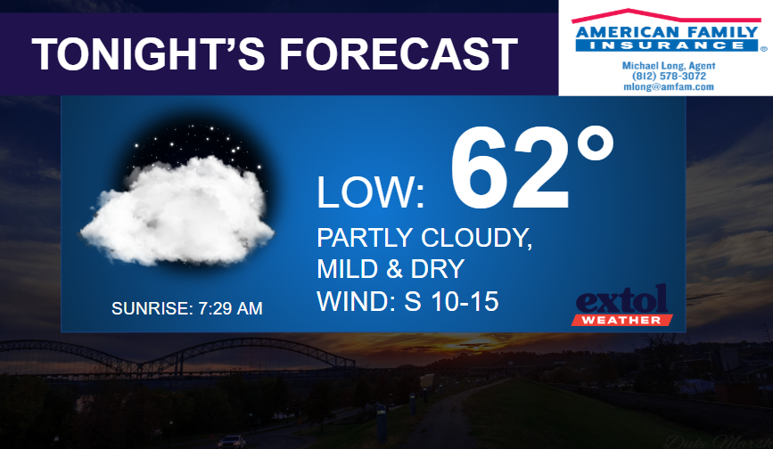 For today, expect temperatures in the mid-upper 70s with a party sunny sky. Staying breezy with southwest winds at 10-20 mph. Most areas will stay dry. Mild in the 60s tonight.